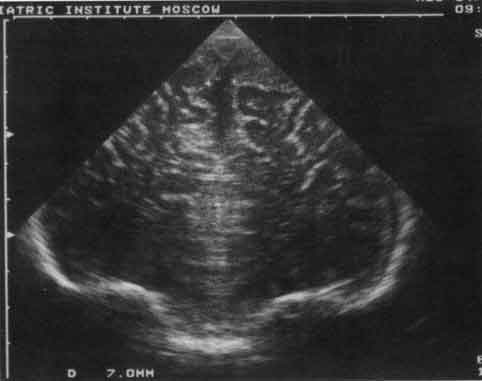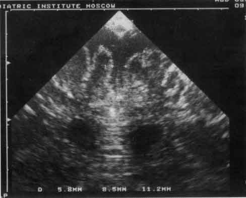 Рис. 1. Эхограмма лобных долей мозга грудного ребенка при семейной